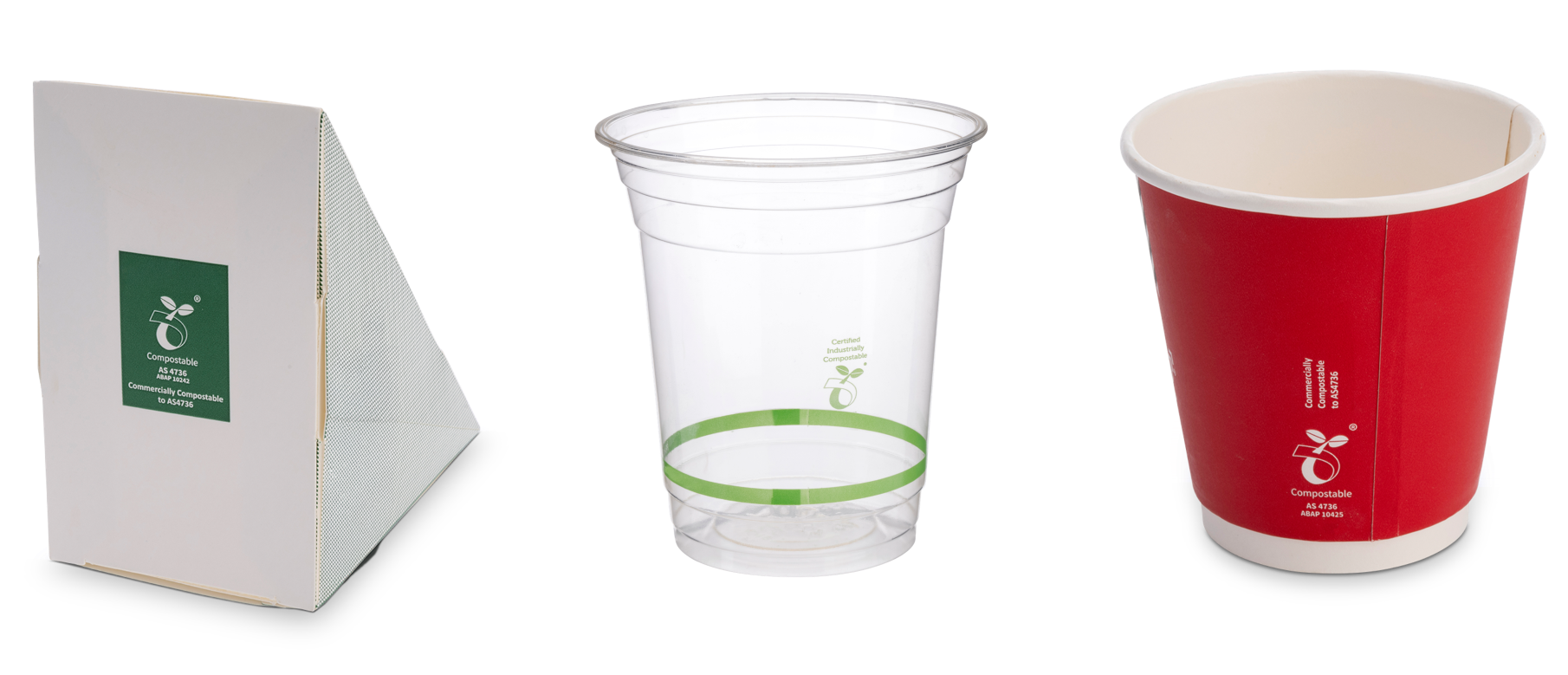 All individual food containers (used for ready-to-eat foods), hot and cold beverage cups and their lids that are plastic lined, aqueous coated or waterproofed using an aqueous application are required to be certified compostable to Australian Standards and clearly labelled to be exempt from the regulations.